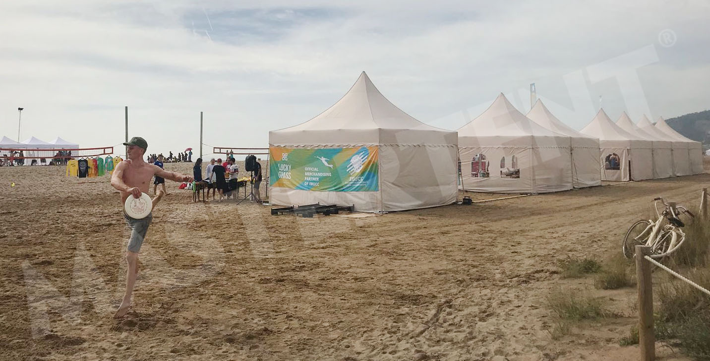El pasado fin de semana MASTERTENT estuvo presente en el Campeonato Europeo de Beach Ultimate 2018, en Castelldefels, ofreciendo sombra y comodidad a todos los equipos participantes gracias al alquiler de carpas 5×5, prácticas, fáciles de montar y con techo alto estilo pagoda. También fueron protagonistas nuestras mesas & bancos, distribuidas en los alrededores de la playa.
